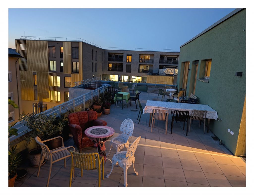 - Suffizienz als Leitgedanke: kleine Wohnungen, gemeinschaftliche Nutzung Mehrzweckraum mit gemeinsamer Küche, gemeinsamer Co-Working Space, gemeinsame Dachterrasse, zusammenschaltbare bzw. trennbare Wohnungen, eine Clusterwohnung